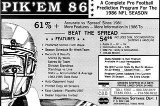 A Complete Pro Football Prediction Program for the 1986 NFL Season